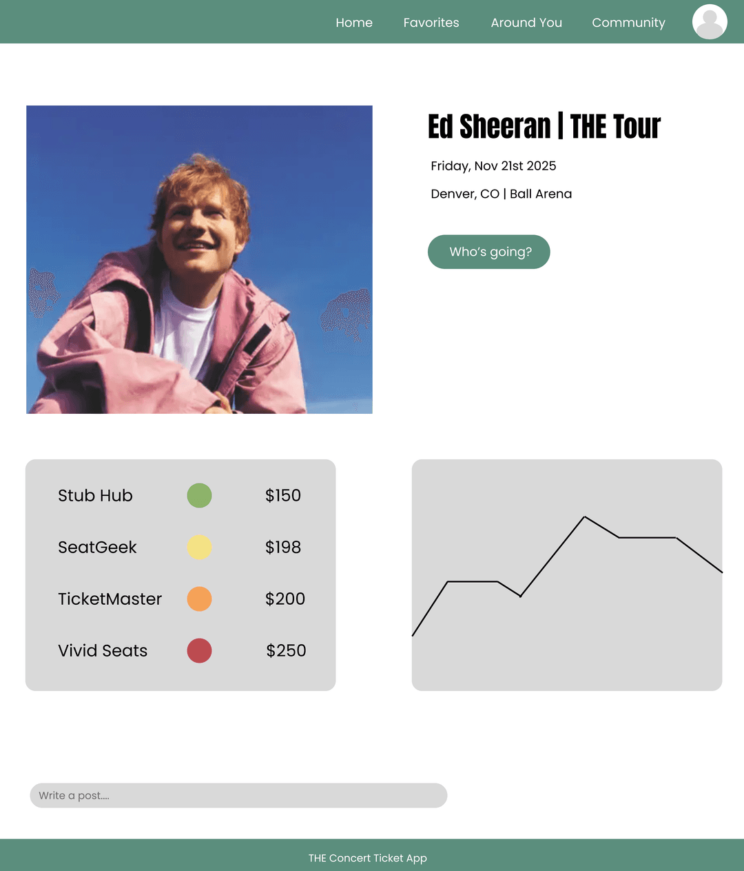 Our project Friends in Low Prices is a web application made through React/Next.js that facilitates ease for ticket buying and new connections for avid concert goers. Our audience is concert lovers who want to meet new people with similar interests. They prefer to share the concert experience with others, but don’t have friends with the same taste, are new to a city, or struggle to coordinate plans. Users will have a home page that shows them the options for shows near them and shows for their favorite artists. Once they click on an event, every major platform’s price for the concert will be shown right next to each other. The user then clicks on the link to the platform, buys the tickets, and comes back to the app and interacts with other users’ posts/DMs to find new friends to go to the concert with. It will be clear in the profiles the kind of music users like, what city they are in, and planning with others will be easy with the DM page. Our app will promote connection and budget-friendly fun! This project is still in progress but will be completed in May 2026